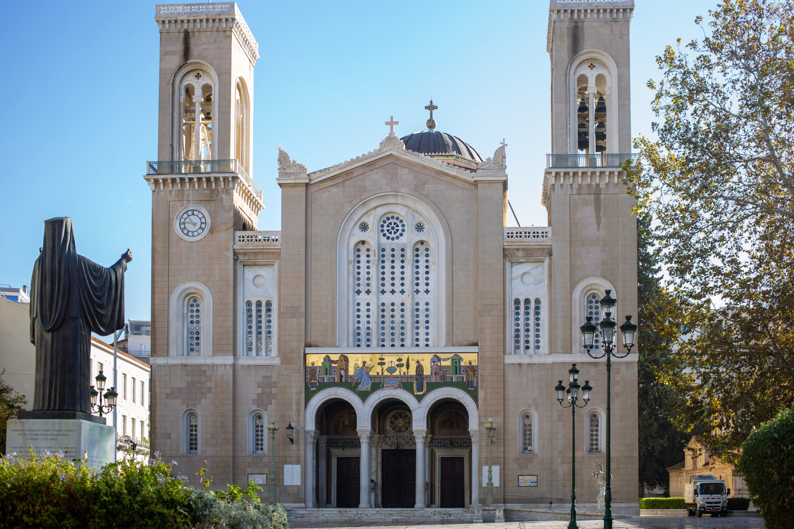 Састанак групе на аеродрому Никола Тесла у 13.30 часова. Полетање авиона грчке националне авио компаније АEGEAN AIRLINES летом A3 977 у 15.40 часова. Слетање авиона у Атину у 18.15 часова по локалном времену. По обављању граничних формалности, одлазак у Камаризу и обилазак храма Светог Нектарија Егинског и поклоњење гробу Старца Нектарија Виталиса. Долазак у Атину, престоницу Републике Грчке. Панорамско разгледање града (Хадријанова капија, Зевсов храм, стари Олимпијски стадион,зграда Парламента, тргови Синтагма …). Смештај у хотел. Слободно време. Ноћење.